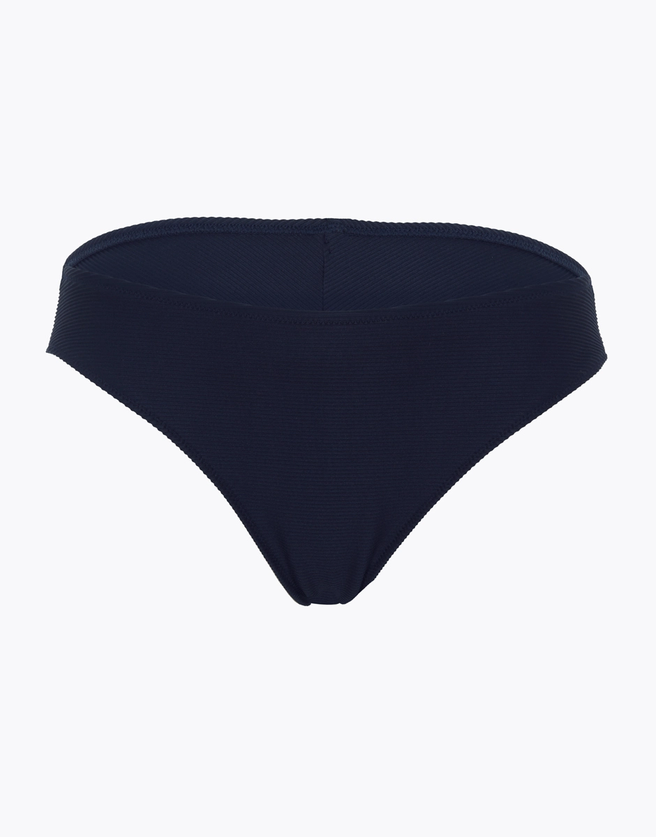 Même sur la plage, ne renoncez pas à votre féminité ! Le modèle brésilien a toujours été synonyme de féminité et de sensualité. Et sa couleur bleu outremer vous apportera une touche élégante et raffinée. En microfibre côtelée et doublée : il vous évitera une transparence désagréable dans l’eau !