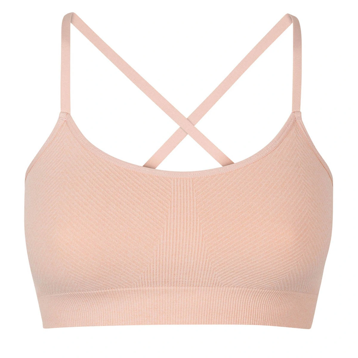 Soyez libre de vos mouvements avec la brassière sans coutures à impact léger rose amande chiné Dim Sport !